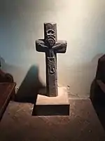 At the Reformation the cross was buried in the churchyard for safety, although Henry VIII's soldiers never came to the church. In 1967 the cross was stolen but was eventually located in a London antique shop after being recognised by the Keeper of Sculpture at the British Museum. It was returned to the church, although without its stepped base, and is now set into a square-shaped stone which bears an inscription.[11][10]