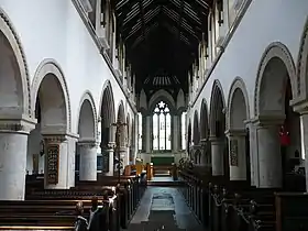 In 1843–1844, during the incumbency of Canon John Puckle, the church, except for the tower, was rebuilt in Early English style. The work was carried out by J. C. & C. Buckler. The church was enlarged and clerestory windows were added.[1][3][4] The tower was restored in 1897.[5]