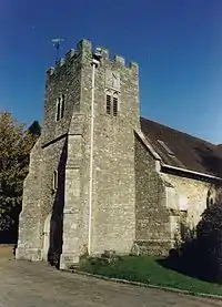 There is evidence that part of the present building dates from the Norman period; the earliest remaining part is the chancel, which with the chancel arch of chalk is 12th century, with a 15th-century Perpendicular east window (Victorian glass). The nave is 13th century and the tower late-15th century.[3]