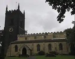 St Mary's Church is located on Church Lane next to Swillington Primary School, on Wakefield Road, Swillington, West Yorkshire, England. There has been a church at this location for at least 900 years. The Domesday Book of 1086 notes that 'a church is there' but no other records of that building remain. The church on the site today is a Grade II* listed building, over 600 years old, built around 1360.[1] The tower was renovated in 1883–1884 with Harehills Stone, which has now weathered almost black, in stark contrast to the creamy yellow of the rest of the exterior. Thomas Dealtry, rector of Swillington 1872–1878, is credited with having introduced the habit of throwing confetti at weddings, from his observation of rice thrown at Hindu weddings in his previous position as Archdeacon of Madras.[2] His predecessor, the Rev A. F. A. Woodford, rector 1847–1872, was a noted masonic scholar and publisher, and became Grand Chaplain in 1863. He is credited, in 1886, with passing to William Wynn Westcott the Cipher Manuscripts leading to the formation of the Hermetic order of the Golden Dawn.
