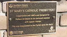 St Mary's Presbytery, Warwick, was built 1885–1887 to the design of local architects Wallace and Gibson for Roman Catholic parish priest Father James Horan.[1]