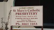 St Mary's Presbytery has a special association with the Catholic community of Warwick, having been the residence of successive priests and curates of the Warwick parish since 1887.[1]