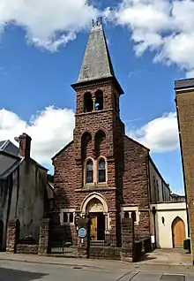 St Mary's Roman Catholic Church, in St Mary's Street near the centre of Monmouth, is the earliest post-Reformation Catholic public place of worship to be permitted in Wales. The church is a late Georgian Roman Catholic church with later Victorian additions by the Catholic convert architect Benjamin Bucknall.[1] It has been designated as a Grade II listed building since 15 August 1974,[2] and is one of 24 buildings on the Monmouth Heritage Trail.