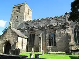 The lower storey of the tower is 12th-century, the later upper part being in Perpendicular style. The south door, protected by a porch, is of about 1300.[3]