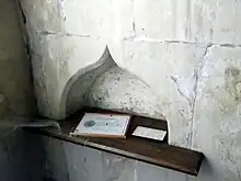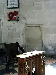 The piscina, a niche used for washing communion vessels, on the south side of chancel