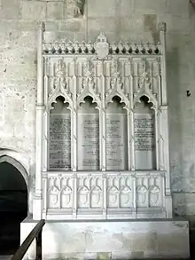 The duties and routines of the chaplains are covered in the will of Roger Ive,[45] This was made on 30 October 1444[46] and enrolled later in the Close Rolls.[47] In the will Ive mentions two deceased chaplains whose souls should be prayed for: William Howyk and Thomas Kyrkeby.[48] The executors of the will include three more chaplains: William Michell, Richard Jewet and John Ive,[49] a total of five, and possibly the original chaplains.[37]