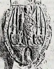 The dedication of the college and chantry was to Mary Magdalene and this had been decided by the time of Henry IV's endowment of Battlefield chapel in March 1409,[24] if not earlier. The Battle of Shrewsbury took place on 21 July, the vigil or eve of St Mary Magdalene's Day, which falls on 22 July. The unknown and unrecovered bodies of the dead would have been buried mainly on the saint's day. The only extant seal of the college, found on a deed of 1530,[36] is marked SIGILLUM COMMUNE DOMINI ROGERI IVE PRIMI MAGISTRI ET SUCCESSORUM SUORUM COLLEGII BEATE MARIE MAGDALENE IUXTA SALOP, showing that the dedication persisted and was regularly attested. The festival of Mary Magdalene was celebrated annually and accompanied by the fair.