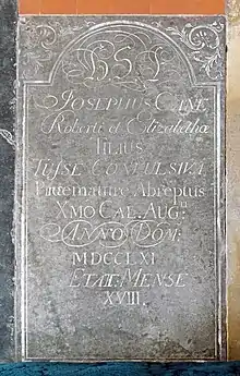 Chancel tomb slab to rector Robert Cane's son, Joseph