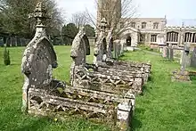 The churchyard contains fifteen Grade II listed chest tombs, and five Grade II listed headstones.