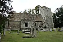 The church was begun in the 12th century with alterations made up to the early 17th century. The church comprises a continuous nave and chancel with a chapel at the east end of the north side of the nave. Porches on the north and south side abut the west tower. Apart from the porches and the chapel, the church is constructed of random flint and has a plain tiled roof. The porches are of uneven stone blocks and the chapel is of galleted stone.[1]