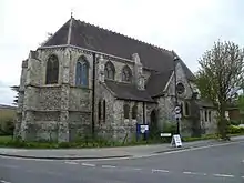 Designed by Richard Herbert Carpenter in an imitation of a 14th-century Gothic style, the church was begun in 1873 as a chapel of ease to the parish church of St Andrew. The following year a shortage of funds brought construction to a halt, and the west end was closed off with a temporary wall. Built of ragstone, the church consists of a three-bay aisled nave, a north transept, and a vaulted apsidal chancel, arranged in a manner advocated by the Tractarian Movement. The temporary wall was finally replaced with a stone wall and a narthex in 1963.[2]