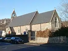 The church of St Mary and St James in Taff's Well remains St Michael's sister church. Originally dedicated solely to St James, the building was erected on Church Street[7] in 1869, originally as a school. It continued in this role until replaced by the current village school in 1879 and subsequently saw conversion into a church.[8] It has a war memorial commemorating local people lost during the two world wars and the Troubles in Northern Ireland.[9] After St Mary's in Nantgarw closed in 1983, St James' amended its dedication to St Mary and St James in commemoration.[4]