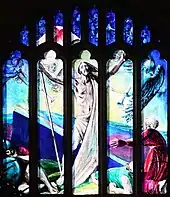 The sanctuary window above the altar was originally plain glass. For some years it had a curtain across it and the large wooden cross hung there. In 1984, an anonymous donor provided the new window. It was painted by the Maltese artist Carmel Cauchi (born 1927) who said 'It shows Christ in the glory of His resurrection. Jesus is the light'.