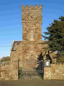 St Nidan's Church was built between 1839 and 1843, replacing its medieval predecessor.[2] The architect was John Welch, who also designed St Ffinan's Church, Llanffinan, in central Anglesey, which was built in 1841.[4][6] St Nidan's was originally intended to have a spire on the west tower, but this was not added. The chancel was built in 1882, and a vestry and organ chamber added later.[4] The battlements on the tower were added in 1933, replacing the original gabling.[2] St Nidan's is set within a walled churchyard on the north of the A4080 road, in the south of Anglesey, Wales. The village of Brynsiencyn is about 500 metres (about one-third of a mile) to the south-west, and the old church of St Nidan is about 750 metres (about half a mile) to the south-east.[4]