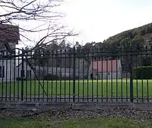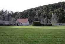 St Ninian's Chapel is located in the grounds of the Mar Lodge Estate, a hunting lodge and former residence of the Duke and Duchess of Fife. The lodge and chapel are located in a rural setting, south of a steep hillside and close to the road through the valley. Open, flat parkland belonging to the estate stretches to the south with numerous trackways and paths. The chapel itself is built close to the Mar Lodge complex, within a large walled garden area[4] separated from the surrounding parkland by an iron grille fence.