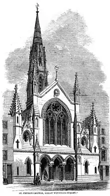 In 1953, a new parish was created, uniting the parishes of St Peter's Church, St Thomas's Church in Regent Street and St Anne's Church, Soho. St Peter's was closed in April 1954, and was demolished.[1][5]