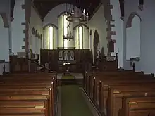 Construction of St Peter’s began in 1880 on an acre of common land at the top of the hause. The main financial backing for the building came from Anthony Parkin of Sharrow Bay and W.H. Parkin of Ravencragg who were both local residents. The architect was J.B. Cory and the builder was Edward Peel of Patterdale who utilised the stone from the surrounding fells to construct the church in the Early English Style. The church, which was consecrated on 6 January 1882, consists of nave, chancel with vestry, bell tower and an entrance porch facing south-west.[3]