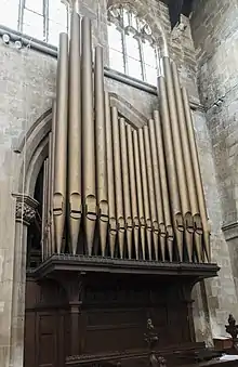 The first organ was erected in 1770 and came from the Theatre at Newark. It was presented by Robert Sutton, Esq. In 1787 an additional stop was introduced by Mr. Casterton, of Lincoln. In 1795 a new organ by Donaldson was purchased and the front of the old one taken to the church at West Retford. The Donaldson organ was replaced in 1841 by a larger one by Walker of London. This survived until 1886 when it was substantially enlarged by Brindley & Foster. There was then later work by Henry Willis & Sons and Cousans.[4]
