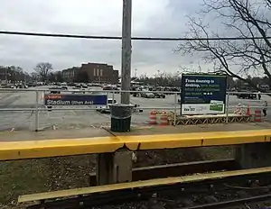 Stadium–Ithan Avenue station, formerly known as Stadium station, is a SEPTA rapid transit station in Radnor Township, Pennsylvania. It serves the Norristown High Speed Line (Route 100) and is located on Ithan Avenue near Lancaster Avenue (US 30), near Villanova Stadium, the athletic facility for nearby Villanova University. Local, Hughes Park Express, and Norristown Express trains stop at Ithan Avenue. The station lies 6.8 track miles (10.9 km) from 69th Street Terminal.