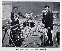 Stanley's family had a history of flying: all his five siblings were also aeronauts,[3] with Arthur and Percival the more well-known; his father Charles Green Spencer pioneered gliding and founded the balloon factory C.G. Spencer & Sons in London;[3] and his grandfather Edward had flown balloons with Charles Green since 1836.[4][5] On 15 September 1898, Stanley piloted a hydrogen balloon for the meteorologist Arthur Berson in what was believed to be a record ascent to 27,500 feet.[6] On 15 November 1899, Spencer ascended with John Mackenzie Bacon and Gertrude Bacon to observe the Leonid meteor shower from above the clouds. Ten hours later, their balloon landed near Neath, South Wales, narrowly avoiding drifting out over the Atlantic.[7]