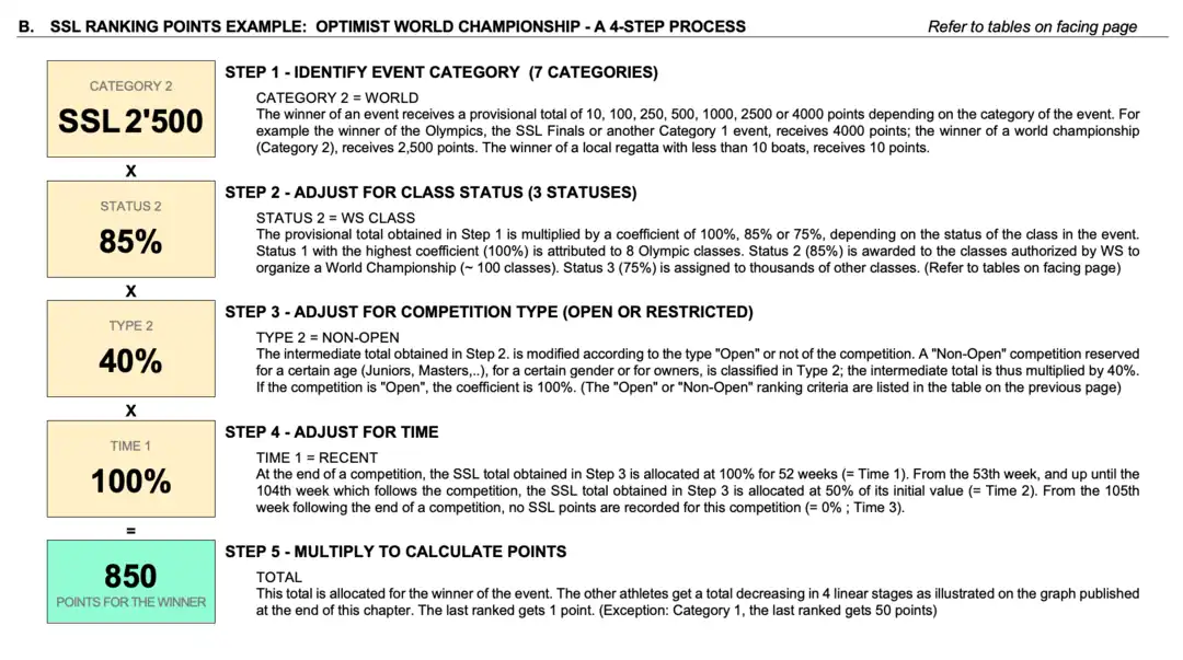 • An athlete cannot be awarded SSL points in the 2 categories if they have participated as a helmsman and as a crew member in the same event. In this case, only the SSL points which are allocated for their role as a crew member are retained.