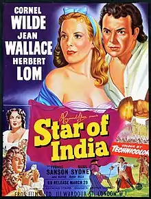 Star of India (Italian: Stella Dell'India) is a 1954 British-Italian swashbuckling adventure film directed by Arthur Lubin and starring Cornel Wilde, Jean Wallace, Herbert Lom, and Walter Rilla.[1] It was shot at the Riverside Studios in London and on location in Aosta. The film's sets were designed by the art director Cedric Dawe. It was released in the United States in April 1956 by United Artists.[2]