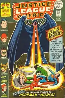 ![]() Starbreaker (background) on the cover of Justice League of America #96 (February 1972), art by Dick Dillin. | |