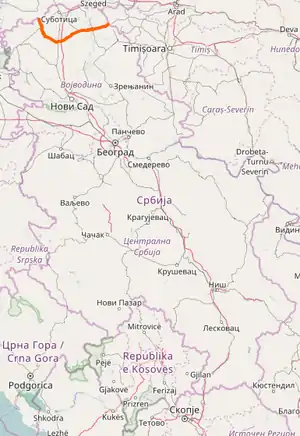 | 10511 | 4.453 km (2.767 mi) | 100.506 km (62.452 mi) | Crna Bara (Mokrin) – Serbia-Romania border (Vrbica) |