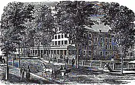 In January 1853, the school opened for its first term in Poughkeepsie.[6] The reasons given for the move as stated by the trustees: "The building in Ballston is old and the rooms are cold, while in Poughkeepsie our accommodations are comfortable and pleasant. The village to which we have removed is much larger and more pleasant than Ballston, containing six or eight flourishing Literary Institutions, of which four are Female Seminaries. The people of Poughkeepsie furnish, besides these Libraries, adequate funds to place the institution on a high and permanent basis."[6]