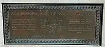 The "larger-than-life", full length statue stands above a plinth adorned with a lotus blossom design and a concrete base with an anti-graffiti coating.[1] The base includes rosettes and a bronze plaque.[1] One inscription below the statue reads the text of the tablet in English, Akkadian cuneiform and Aramaic. The text "Ashurbanipal, King of Assyria, 669–627 B.C." appears above and the text "Dedicated May 29, 1988" appears below, both in English.[7] Another inscription below the statue reads, "Presented to the City of San Francisco by the Assyrian Foundation for the Arts through donations of American Assyrian Association of San Francisco / Assyrian American National Federation", followed by a list of names of donors.[7] In December 2010, the San Francisco Chronicle reported that a large plaque from the sculpture was missing.[8]