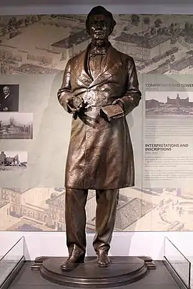 In March 2015, UT's student government passed a resolution calling for the removal of Jefferson Davis from the South Mall.[3] That August, the university in fact removed the statues of both Davis and Woodrow Wilson from the Mall and placed them in storage, despite a lawsuit from the Texas Division of the Sons of Confederate Veterans, which failed to persuade the Texas Supreme Court to block the plan.[4][5] Davis was later relocated to the university's Dolph Briscoe Center for American History, where it has been displayed since 2017.[6][7]