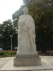 While two earlier busts existed, the Galați monument is the oldest sculpture of Eminescu. Every year, commemorations are held to mark his birth (January 15) and death (June 15).[8] Beginning in 1998, unknown persons have cut off the torch-bearing hand of the female figure, typically in the days before January 15. Despite the installation of security cameras, no one has ever been apprehended. Some 20 times, the hand has had to be replaced with a plaster replica.[9] The statue is listed as a historic monument by Romania's Ministry of Culture and Religious Affairs.[10]