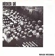 "Statues" is a song by Hüsker Dü released as a single in 1981.[3] It was the band's first single, b/w the song "Amusement."[4] This release finds the band in a period where its music was drifting from punk to post-punk. Briony Edwards of Louder wrote, "Though it shows an interest in experimentation that would follow the band through each stage of their career, the ... Krautrock inspired, Keith Levene-esque guitar is far removed from the boisterous hardcore that followed in its wake."[5] The single's pressing was limited to 2,000 copies. The two tracks appear on the Everything Falls Apart and More CD.