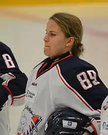 Prior to the NCAA, she was nominated to be Swiss Hockey Woman of the Year in 2005. Her Swiss team placed eighth in the 2004 World Championship at Halifax. Marty appeared in the 2006 Olympic games in Torino where her team earned seventh place. From 2003–2007, she played for the EV Zug in the Swiss league. The team earned two Swiss Championships in 2004 and 2005 and two Swiss Vice-Championships in 2006 and 2007.[2] At the Vancouver Winter Games, she tied the Olympic record for most goals scored in a single tournament with nine and helped her homeland to a fifth-place finish.[3] In a game against Russia at the 2012 IIHF Women's World Championship, Stefanie Marty scored two goals in a 5–2 victory, as Switzerland advanced to the semifinals.[4]