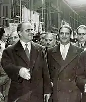 Konstantine Karamanlis with Stefanos Natsinas visiting the Central Market of Athens.