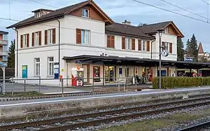 Stein am Rhein railway station (German: Bahnhof Stein am Rhein) is a railway station in the Swiss canton of Schaffhausen and the municipality Stein am Rhein. The station is situated on the opposite (southern) bank of the Rhine to the historic centre of the town, a walk of some 500 m (1,600 ft).[1] It is located on the Lake line (German: Seelinie), which links Schaffhausen with Rorschach.