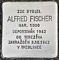 Alfred Fischer was born on 14 April 1900 in Třebíč. His parents were Eduard Fischer and Auguste née Zeisel. He had at least one brother, Karel. He was married to Marta née Eckstein. The couple had three children, Karel (born on 13 June 1918), Eugenie (born 1931) and Edita (born 1935).[13] The last residence of the family before deportation was in Kolín. On 13 June 1942, Alfred Fischer, his wife and his little daughters were arrested and deported to Theresienstadt concentration camp by transport Aad. His transport number was 56 of 736. After four months, on 8 October 1942, the family was deported to Treblinka extermination camp. His transport number was 40 of 1,000. There, father, mother and the two daughters were murdered by the Nazi regime.[14][15]