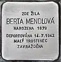 50. holocaust.cz: BERTA MENDLOVÁ, retrieved on 9 April 2017