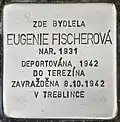 Eugenie Fischerová, also Evženie, was born on 2 November 1931 in Kolín. Her parents were Alfred Fischer and Marta née Eckstein. She and her sister Edita (born in 1935) grew up in Kolín, she also had an older brother, Karel (born 1918). On 13 June 1942, the girl, her sister and her parents were arrested and deported to Theresienstadt concentration camp by transport AAd. Her transport number was 58 of 736. Four months later, on 8 October 1942, the family was deported to Treblinka extermination camp. Her transport number was 42 of 1,000. There, mother, father and the two daughters were murdered by the Nazi regime. Eugenie Fischerová was 10 years old.[19][20]
