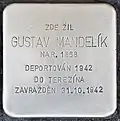 The last residence of Gustav Mandelík and his wife before deportation was in Kolín. On 13 June 1942, they were deported to Theresienstadt concentration camp by transport AAd. His transport number was 138 of 736.[30] On 10 August 1942, his daughter Zdeňka and his granddaughter Eva arrived in Theresienstadt, being deported from Prague.[31][32] Nevertheless, Gustav Mandelík died on 31 October of the same year in Theresienstadt, due to Cachexia caused by starvation, overpopulation and lack of hygiene.[33]