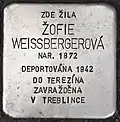 80. holocaust.cz: ŽOFIE WEISSBERGEROVÁ, retrieved on 31 March 2017