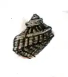 This species is decussated with transverse and longitudinal striae, and there are two prominent, angular, keels on the whorls. The spire is acute and prominent.[3]