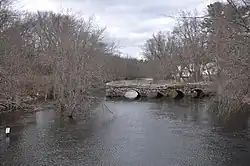 Stone's Bridge is a historic stone arch bridge in Framingham and Wayland, Massachusetts. It is located just north of Stonebridge Road, and partially crosses the Sudbury River. Built in 1858, it is a well-preserved example of mid-19th century stone bridge construction, despite its truncation in 1955 due to a shift in the river channel. The bridge was listed on the National Register of Historic Places in 1975.[1] It is closed to all access.