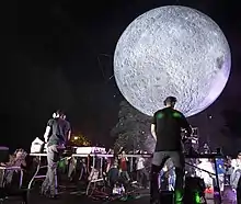 Artists perform for an excited group under the Museum of the Moon installation on Tom Patterson Island.