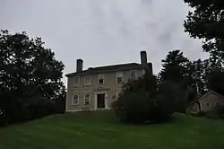 The historic center of the Stroudwater neighborhood of Portland is located on both sides of the Stroudwater River, at its mouth where it empties into the Fore River. The historic district encompasses a roughly triangular area, bounded on the northwest by a line extending along Penrith Road, the northeast by the Fore River, and the south by Garrison Street, although it extends a short way beyond Garrison on Westbrook Street. This area contains a significant concentration of houses built in the late 18th and early 19th centuries houses. It also has one of the city's early cemeteries (the oldest marked burial dating to 1739), and the Tate House, a National Historic Landmark house built in 1755 by a mast agent for the king. The area also has a number of mid-19th century houses, a remnant section of the Cumberland and Oxford Canal, and the archaeological remains of its early industrial past.[2]