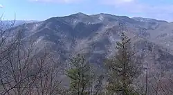 Sugarland Mountain is a ridge that consists of a series knobs and peaks, each increasing in elevation as the mountain approaches its junction with the main Smokies crest. The northernmost knobs, which overlook Fighting Creek Gap and Mids Gap, have elevations of around 3,000 feet (910 m). Beyond Huskey Gap, the mountain rises sharply to its prominent 4,833-foot (1,473 m) northern peak as the crest narrows, and maintains an elevation of 4,300 feet (1,300 m) to 4,800 feet (1,500 m) for several miles. At the headwaters of Rough Creek, the mountain rises above 5,000 feet (1,500 m) for the first time, eventually reaching 5,494 feet (1,675 m) at its summit. The Chimney Tops, which consist of two barren slate capstones, crown a narrow ridge that branches off the southeastern slope of Sugarland Mountain, opposite the Rough Creek headwaters. Sugarland Mountain's various knobs and peaks are typically connected by narrow "backbone" ridges, some of which are just a few feet wide. The relatively broad Huskey Gap— between the mountain's northern peak and its lower northern knobs— is the exception.