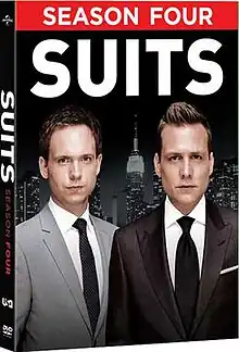 The fourth season of the American legal comedy-drama Suits was ordered on October 22, 2013.[1] The fourth season originally aired on USA Network in the United States between June 11, 2014 and March 4, 2015. The season was produced by Hypnotic Films & Television and Universal Cable Productions, and the executive producers were Doug Liman, David Bartis and series creator Aaron Korsh. The season had six series regulars playing employees at the fictional Pearson Specter, later Pearson Specter Litt, law firm in Manhattan: Gabriel Macht, Patrick J. Adams, Rick Hoffman, Meghan Markle, Sarah Rafferty, and Gina Torres. Both Gabriel Macht and Patrick J. Adams made their director debut this season, with Macht directing the eleventh episode while Adams directed the 14th episode.