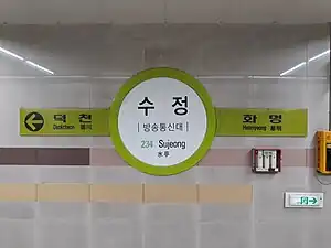 Sujeong Station (Korean: 수정역; Hanja: 水亭驛) is a station on the Busan Metro Line 2 in Hwamyeong-dong, Buk District, Busan, South Korea.