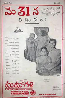 Sumangali is a 1940 Telugu-language film written, directed and produced by B. N. Reddy.[1] The film stars V. Nagayya, A. S. Giri, Kumari and Malathi. The main concept of the film widow remarriage is inspired by Kandukuri Veeresalingam.