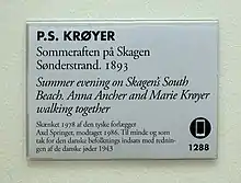 8. "P.S. Krøyer 1851-1909 "Sommeraften ved Skagen Sønderstrand. Anna Ancher, t.v. og Marie Krøyer". 1893" (in Danish). Kunstnyt.dk. Retrieved 11 May 2015.